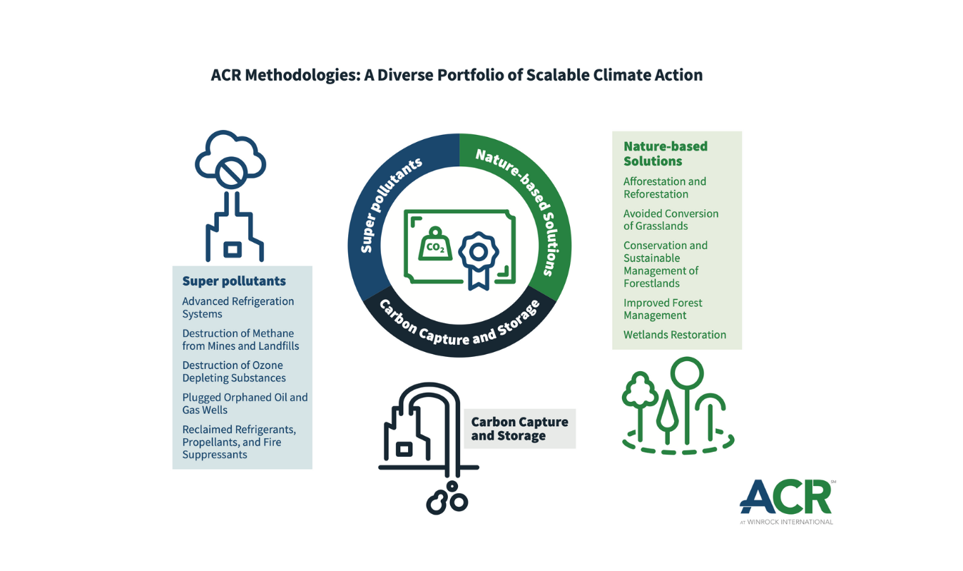 ACR methodologies support emission reductions and removals across various sectors, including forestry and wetlands, carbon capture and storage, industrial sources, and waste handling and disposal.